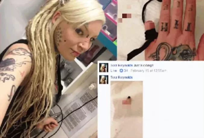 A British woman identified as 30-year-old Torz Reynolds, shocked people when she took to Facebook live to cut off her own little finger, after a week of promising to do so.