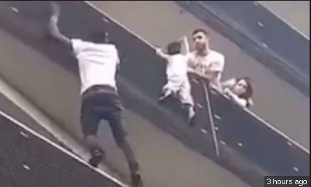 Footage taken at the scene on Saturday night around 20:hrs shows Gassama pulling himself up from balcony to balcony with his bare hands as a man on the fourth floor tries to hold on to the child by leaning across from a neighbouring balcony.