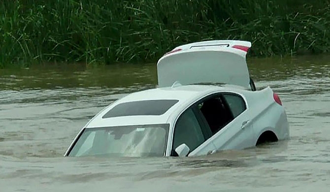Video from the scene shows the ride floating above a pile of tall grass as locals, divers and an earthmover try to pry the submerged car out of the water. Officials don’t plan on making any arrests since no complaints were filed.