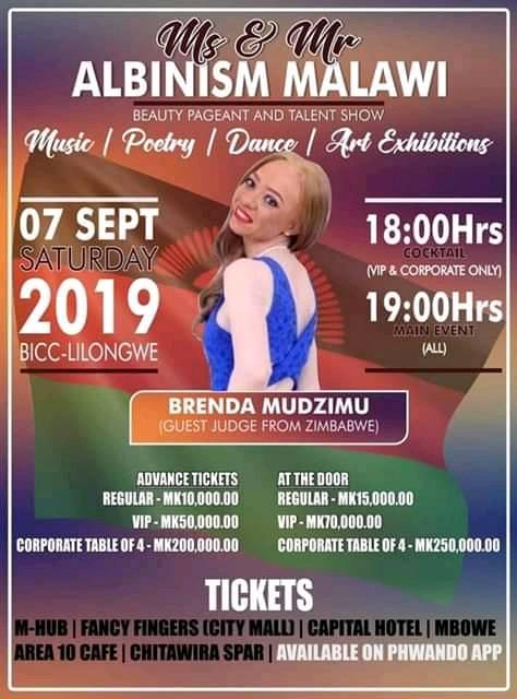 Finalists for Mr and Miss Albinism beauty pageant and talent show will enter camp on Wednesday in preparation for the show at Bingu Wa Mutharika International Convention Centre (BICC) on Saturday, 7th September, 2019.