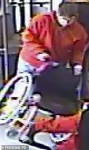 As the light rail in Phoenix pulled into the station at 12th street and Jefferson, Austin Shurbutt, 26, was seen grabbing the chair from beneath her.