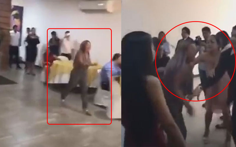 Mexico City – A jealous woman was caught on camera crashing a wedding and trying to attack the bride in front of shocked guests.