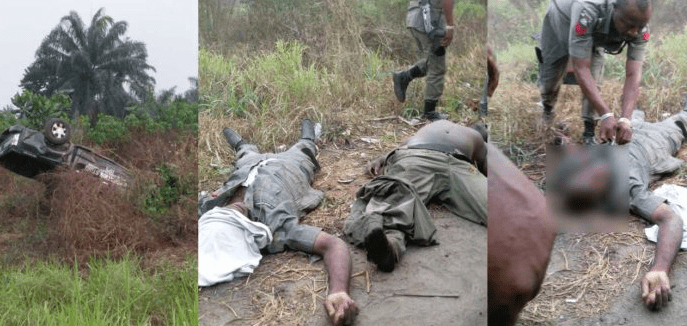 “Just in- Two Police officers chasing a Siena with passengers had a fatal accident leaving the two Police officers dead along the Ogoni/Akwa Ibom road while the Siena disappeared.