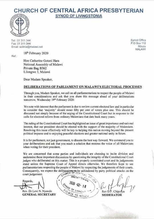 ‘We commend you to your deliberations and ask that you reach a solution that restores the voice of all Malawians,” said Nyondo.