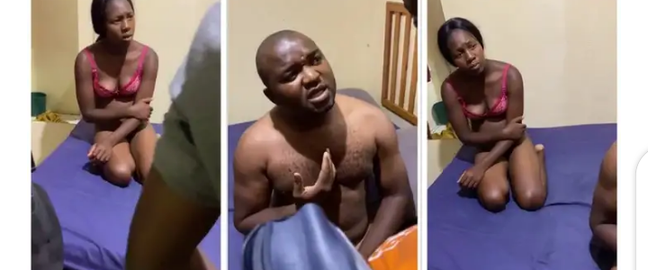 There was drama at a local lodge in Nigeria after a cheating adulterous couple was caught red-handed by their respective spouses.