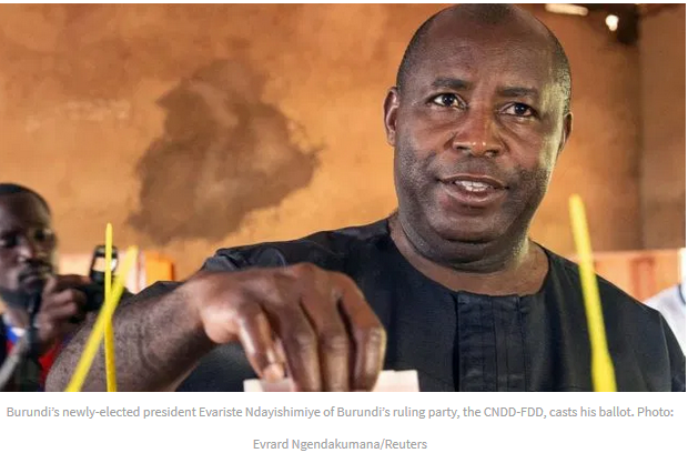Ndayishimiye, 52, a former army general and Hutu rebel like his predecessor, had been handpicked by the powerful ruling CNDD-FDD to run in a May 20 presidential election.