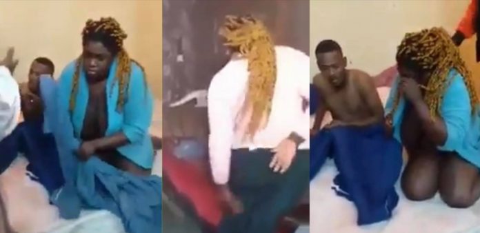 A young Ghanaian lady who’s name is yet to be known to us has received the beatings of her life after she was caught red handed being ‘chopped’ by a man in Saudi Arabia.