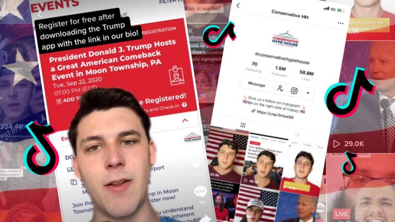 The Conservative Hype House, a group account for a number of right-wing content creators, has been posting videos featuring an identifying code assigned by the official Trump campaign – “CHH” – that allows users to join its text-alert service.