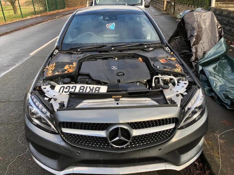 The owner of a dark grey C-class Mercedes Benz was shocked to find it stripped down to a metal shell last week, after a gang of “professional” thieves dismantled it right in front of his house, at night.