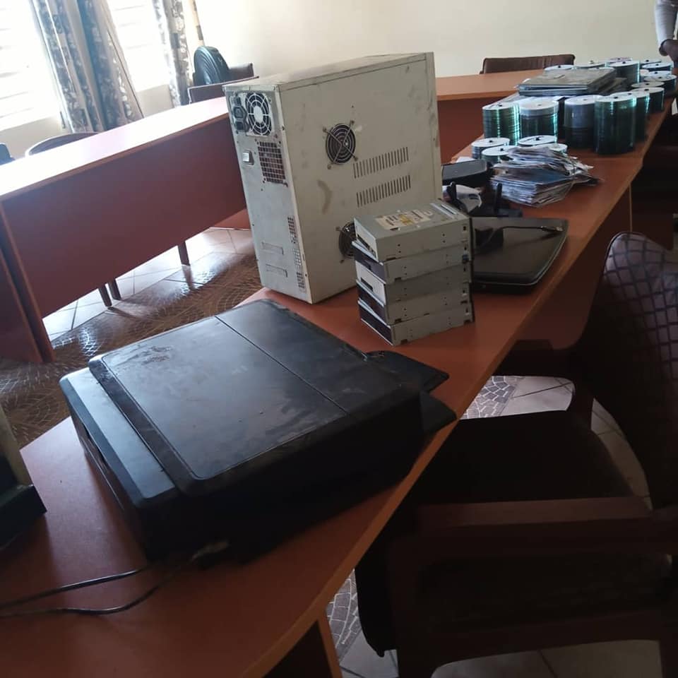 The Inspectors conducted a raid at the suspects house and he was indeed found in possession of 2000 Master CDs and 68 other CDs, 2 Duplicating Machines, 1 Canon Printer, 1 Prixma Printer, 1 Acer Laptop, 1 Sabara Laptop and 10 DVD Writers which he used in carrying out the crime.” COSOMA PPRO Assistant Ettah Kamanga narrated