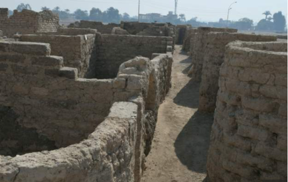 The archaeologists were searching for a temple in the desert sands near the city of Luxor. They began finding something else; the walls of houses stretching away in all directions.