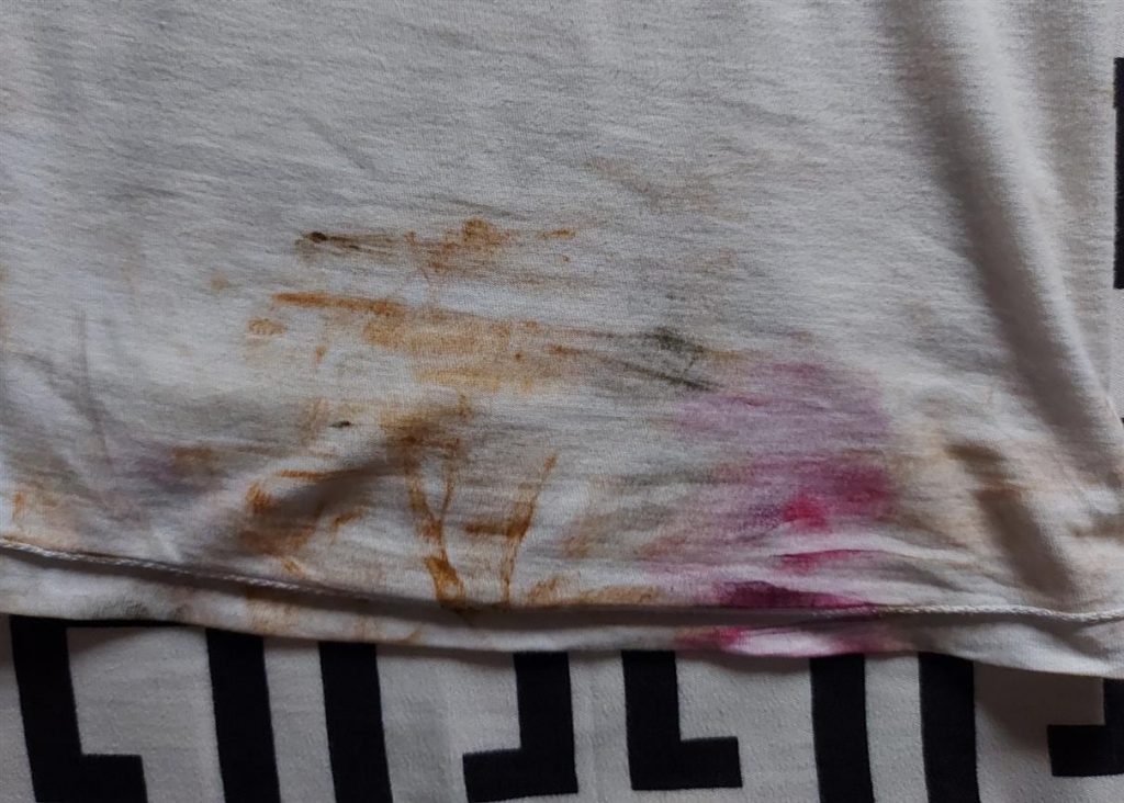 He shared a photo of one of his T-shirts smeared with what appears to be makeup.