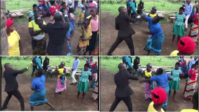 When the woman saw that the pastor is no near letting her go, she started punching the pastor, sending a strong message that she do not want to be touched.