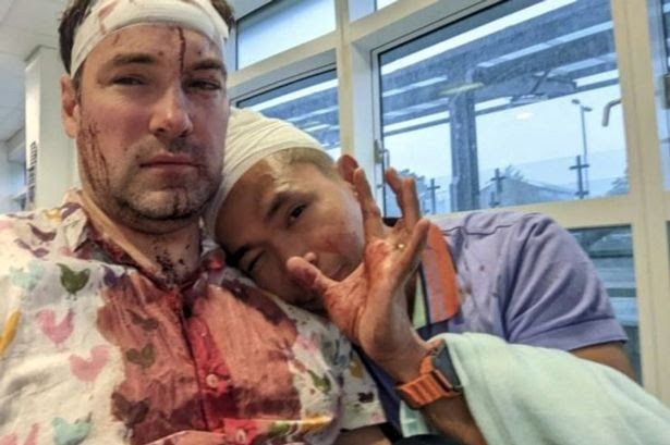 Birmingham Live reporting the incident say Rob was attacked and beaten with bottles, and his husband Patrick was knocked unconscious during their ordeal.