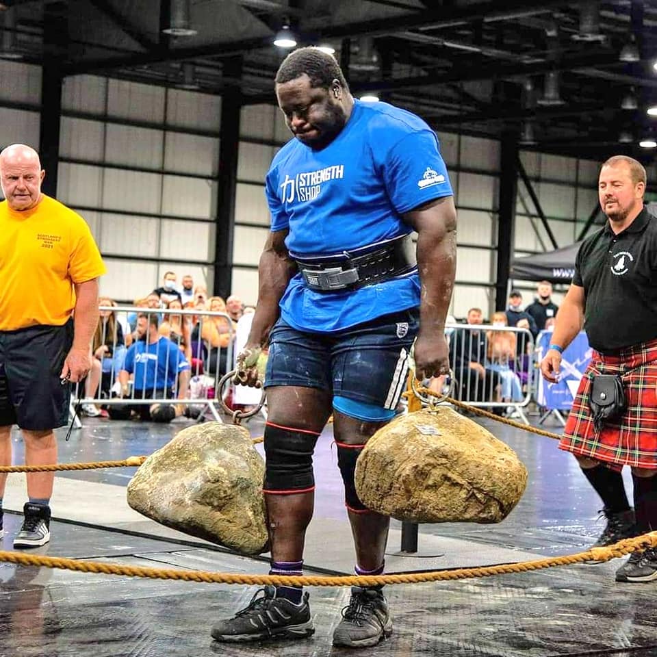 The win saw the 32-year-old pushing Calum Elder into second place over seven tests of strengths which consisted of a keg medley, Farmer’s Walk, squat lift, monster dumbbell press, deadlift, Fingal’s Finger and tyre flip and drag.