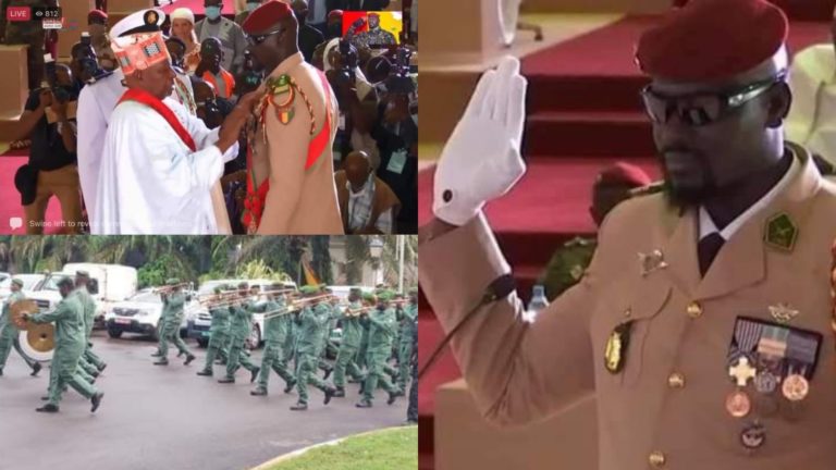 Newly Sworn In Guinean President Col Doumbouya vows not to contest in the next elections as video of his investiture emerges with soldiers marching