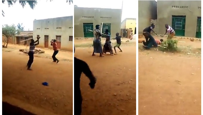 A video which surfaced on social media shows two families fighting each other in a rather dramatic and oddly hilarious manner.