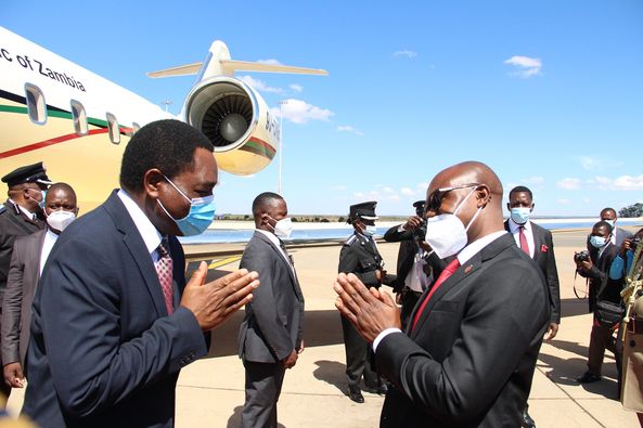 President of the Republic of Zambia Hakainde Hichilema has arrived in the country through the Kamunzu international National Airport in Lilongwe.