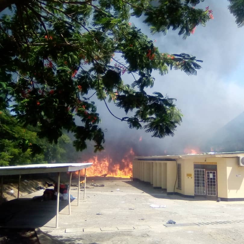 Information reaching faceofmalawi indicates that the fire that is gutting Leopard Match 2018 Limited Factory at Ginner Corner in Blantyre has spread to a nearby company called Ishani Products.