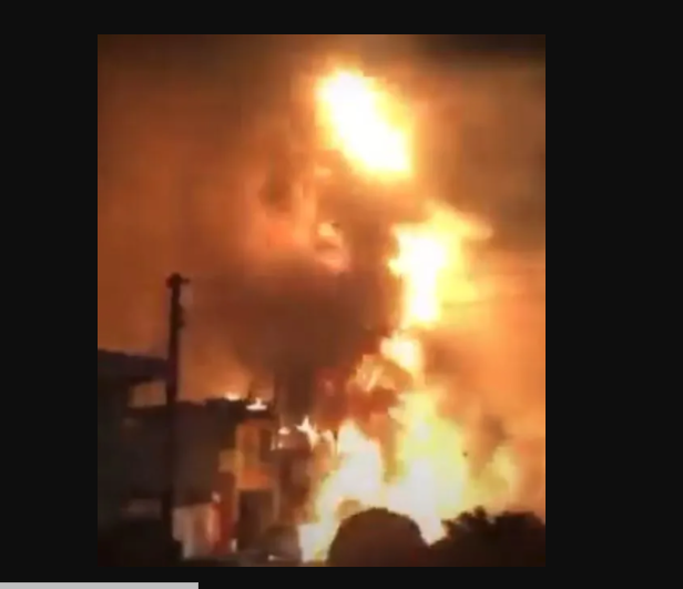 Footage shared online showed the aftermath of the explosion with the flames pouring from the wreckage of the vehicle.