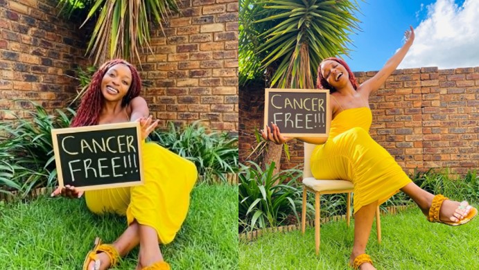She shared photos of herself celebrating being cancer free and said she is brave enough to share the good news with the public.
