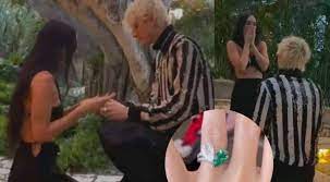 The couple returned to that spot for a special moment. In a video posted by Fox, the two are seen atop a flight of stairs. MGK then went on one knee to pop the question to Fox, who was wearing a sultry black cutout dress.