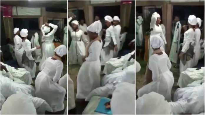The lady’s act in the celestial church popularly known as white garment church went on before the supposed seated pastor who didn’t flinch or react.