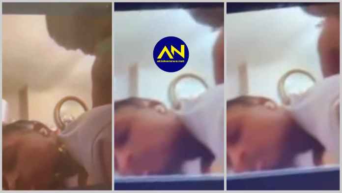 While the meeting was ongoing, she was shouting on the bed in a d00ggy position and it showed that someone was giving it to her at the back.