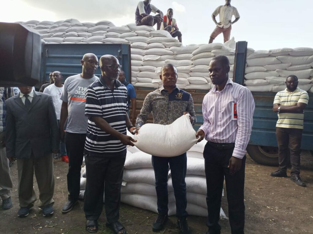 Hundreds of people in N’gabu have gathered at the site where distribution of food and other relief items is taking place.