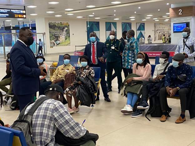 The first group of 17 students arrived on Tuesday morning at Kotoka International Airport, in the capital, Accra.