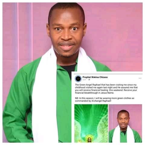 Self acclaimed Malawian Prophet Wakisa Chizaso is claiming that an angel alleged from God has commanded him to keep wearing green clothes only.
