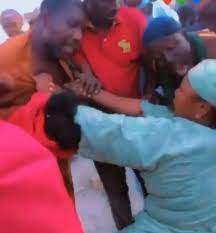 Watch| Drama As Nigerian lady disrupts her husband’s wedding ceremony to his second wife