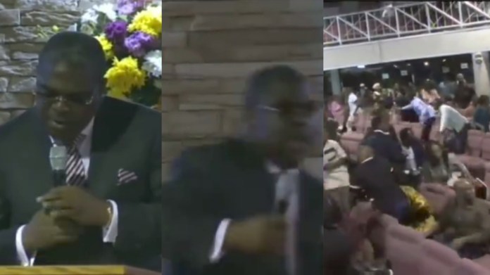 Church members flee in panic as Pastor suddenly ‘runs away’ during sermon in new viral video.