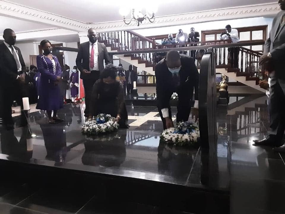 Peter and Gertrude Mutharika laying lethal at a tomb of Bingu Wa Mutharika at Ndata (5 April, 2022)