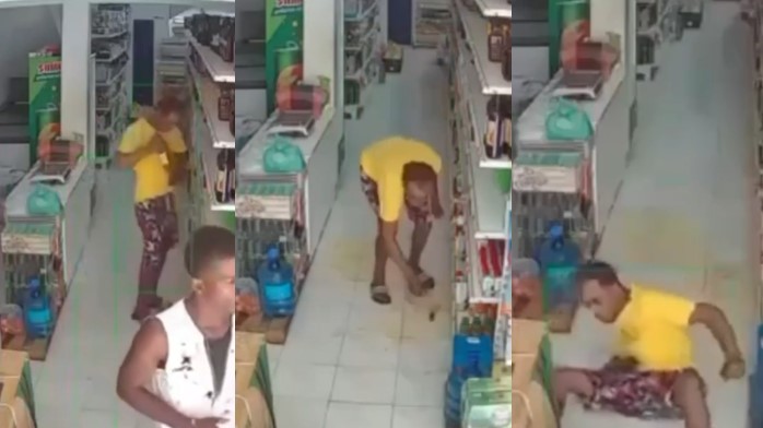 In a video posted online, he walked into the story and put the wine in his shorts, unfortunately for him, it slipped out, fell to the floor and broke.