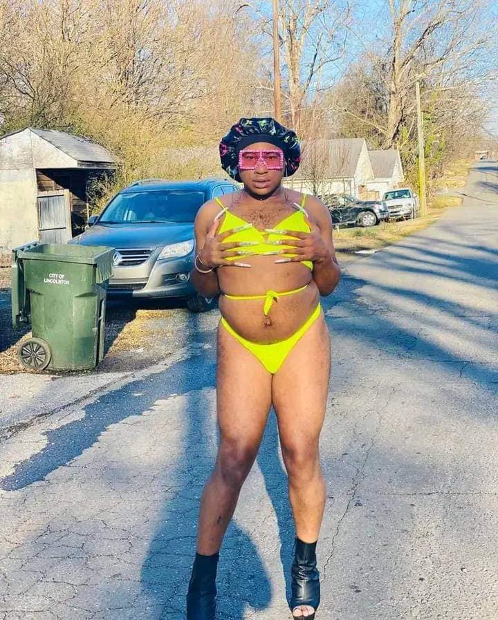 The pictures this publication has seen, are of the full grown up man dressed in a yellow bra and panties.