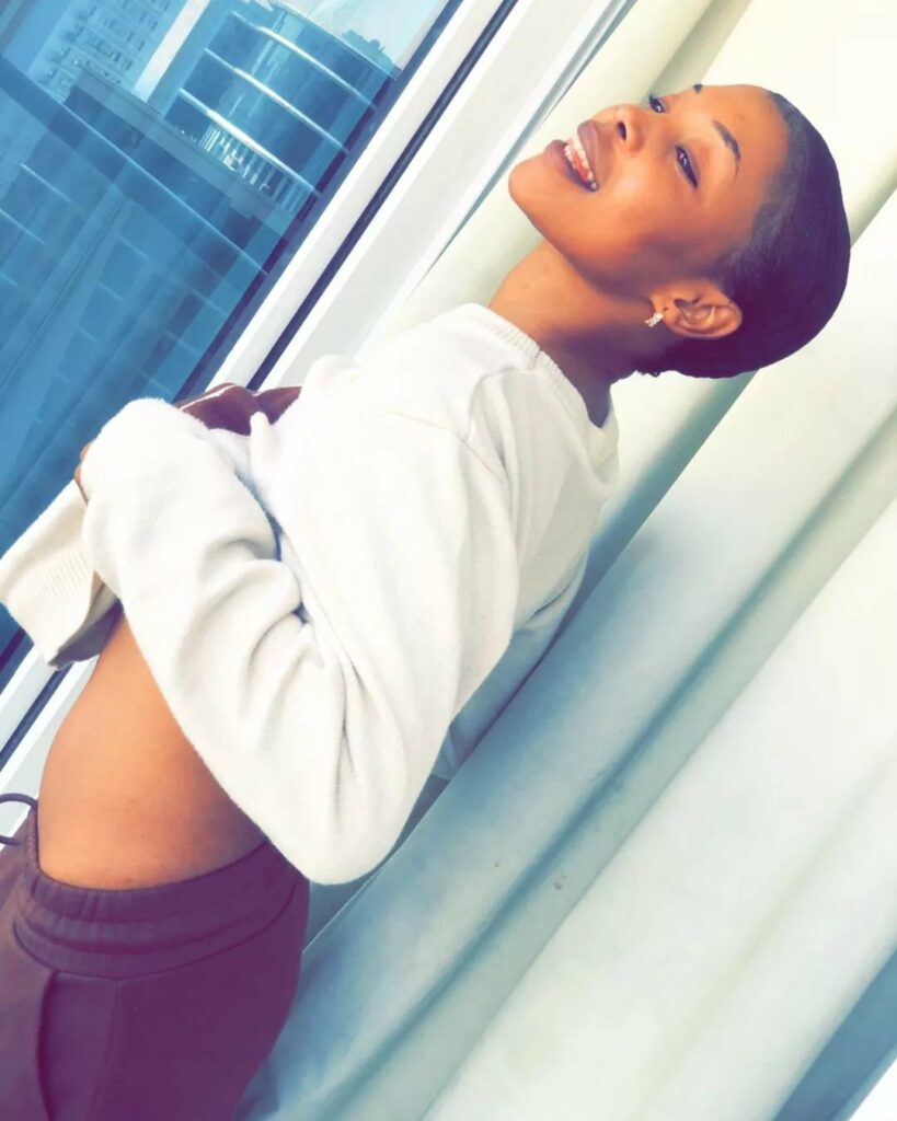 From the shocking video circulating on Twitter shot by witnesses from a nearby building, Mona Kizz is seen standing on the window of what appears to be a staircase, holding both sides of the wall. She contemplates her fate, although her resolve is quite apparent.