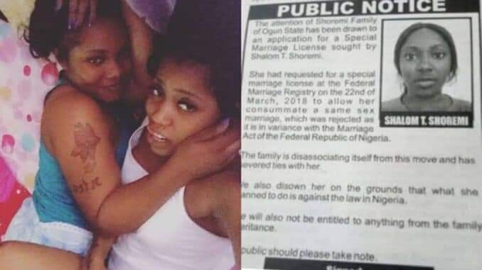 “She can no longer refer to us as her family members nor return to the family. As a matter of fact, she cannot even practice her shameful act here in Nigeria as we will report her to the authority and make sure she is jailed.