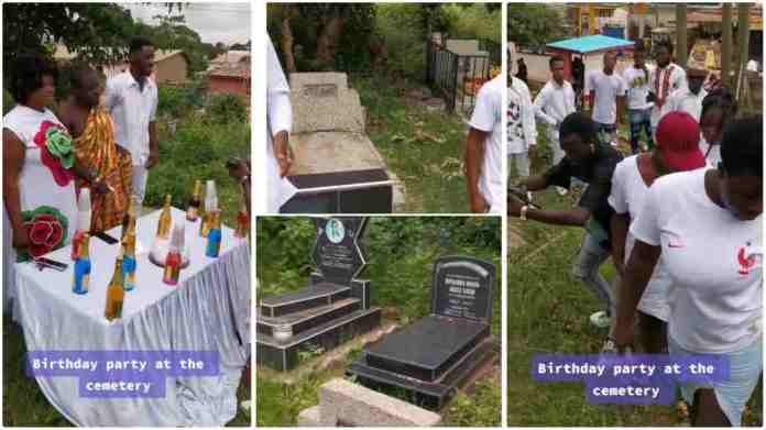 Cemetery birthday party…. A Ghanaian man celebrated his birthday in an unusual manner that has sent social media into a mixed frenzy.