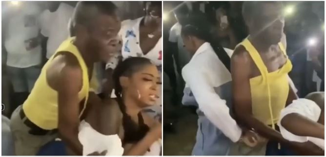 The females even stole money from the man’s pocket and tore his yellow singlet, but he didn’t care because all that mattered to him was ‘grinding’ the girls.