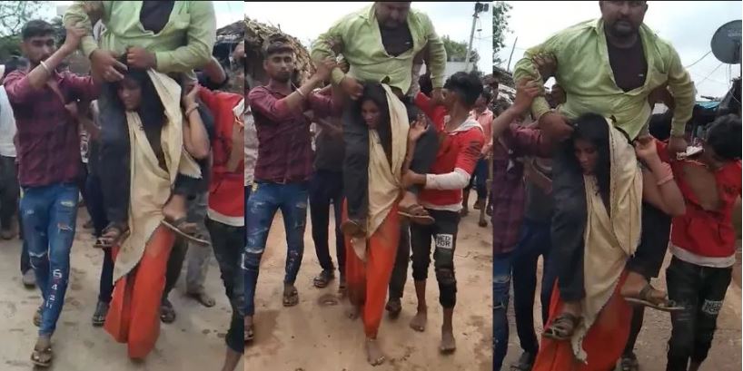 The woman was then made to carry her husband through town.