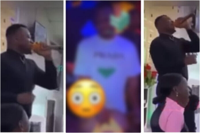 Watch|| Man spotted in a strip club ‘giving it to a lady hard’ on Saturday evening seen leading praises and worship in church on Sunday