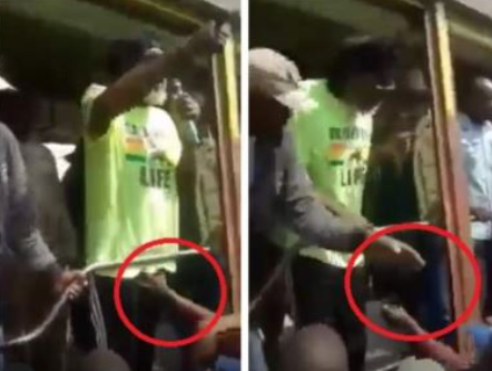 The Roots party flagbearer jumped back, while his security detail also swung into action, forcing the woman to quickly withdraw her hand.