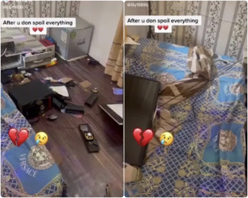 Watch|| Lady Destroys Items In Her Boyfriend’s Room Because He Did Not Kiss Her Goodnight