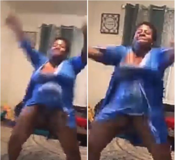 The woman who was wearing a nightie with no underwear, flashed her private part while dancing to a song playing in the background.