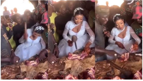 Social media is flooded with a video clip of a bride who kept the groom waiting at the church just to sell meet to her customers.
