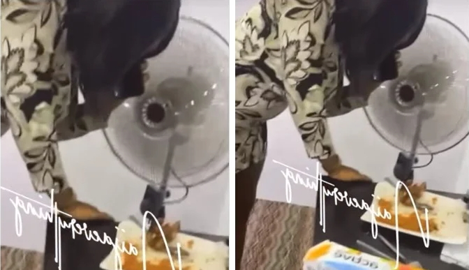 In a video posted online, it could be seen that they had finished eating rice and drinking juice when her man called her mobile device.