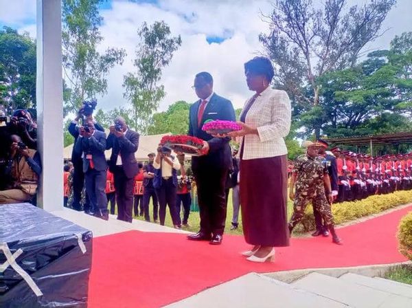 President Chakwera, alongside First Lady Monica Chakwera has led in laying of wreaths at Chilembwe’s Memorial Tower, before a church service.