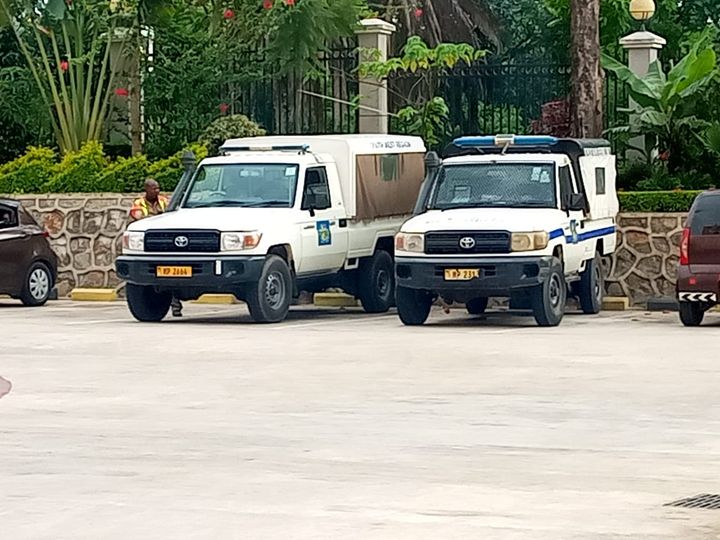 In response to the situation, four police land cruisers carrying uniformed officers have arrived at the hotel to resolve the matter.