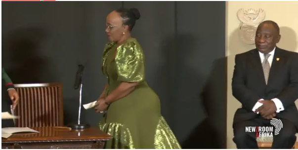 President Cyril Ramaphosa has caused a stir on social media after a video of him looking at the new Transport Minister Sindisiwe Chikunga’s behind went viral. The incident occurred during the recent cabinet reshuffle where Ramaphosa appointed new ministers and axed old ones.